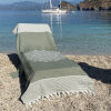 Maak je gebruik van een strandbed? Dan is onze populaire beachbed cover Three Palms een ideale oplossing. Deze stranddoek sla je eenvoudig om het hoofdeinde van het strandbed, waardoor de doek niet wegwaait.