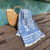 Maak je gebruik van een strandbed? Dan is onze populaire beachbed cover Three Palms een ideale oplossing. Deze stranddoek sla je eenvoudig om het hoofdeinde van het strandbed, waardoor de doek niet wegwaait.