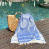 Ga je naar het strand of het zwembad, dan mag een hamamdoek of strandlaken gerust wat groter zijn. Een formaat van 100 x 180 cm is praktisch en comfortabel. Wil je liever met je hele lichaam languit op de doek liggen, dan raden wij een hamamdoek van 100 x 200 cm aan.