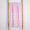 De Ottomania mooi gestreepte hamamdoeken in de kleur roze zijn gemaakt van hydrofiel katoen waardoor ze zeer goed vocht opnemen. Deze lichtgewicht hamamdoek is ideaal als strandhanddoek, op reis, op de boot, naar het zwembad, sportschool of de sauna. De doek kan zeer compact worden opgevouwen en weegt maar 500 gram. Bovendien is de hammamdoek snel droog en goed te wassen. Daarom ideaal voor in de koffer, rugzak of strandtas. Prima te gebruiken als strandlaken of op een ligstoel.