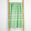De Ottomania mooi gestreepte hamamdoeken in de kleur pistache zijn gemaakt van hydrofiel katoen waardoor ze zeer goed vocht opnemen. Deze lichtgewicht hamamdoek is ideaal als strandhanddoek, op reis, op de boot, naar het zwembad, sportschool of de sauna. De doek kan zeer compact worden opgevouwen en weegt maar 250 gram. Bovendien is de hammamdoek snel droog en goed te wassen. Daarom ideaal voor in de koffer, rugzak of strandtas. Prima te gebruiken als strandlaken of op een ligstoel.