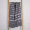 De Ottomania mooi gestreepte hamamdoeken in de kleur zwart zijn gemaakt van hydrofiel katoen waardoor ze zeer goed vocht opnemen. Deze lichtgewicht hamamdoek is ideaal als strandhanddoek, op reis, op de boot, naar het zwembad, sportschool of de sauna. De doek kan zeer compact worden opgevouwen en weegt maar 500 gram. Bovendien is de hammamdoek snel droog en goed te wassen. Daarom ideaal voor in de koffer, rugzak of strandtas. Prima te gebruiken als strandlaken of op een ligstoel.